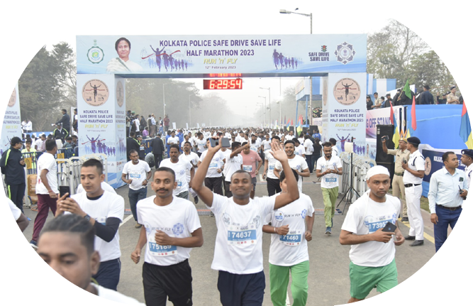 Kolkata Police is organising the 5th Kolkata Police SDSL Half Marathon on 9th February 2025 in three race categories 21K , 10K and 5K. Participants will get a platform to showcase their endurance and they will also carry with them the message of better road safety for themselves, their family members and friends. Routes are chosen to reach out to all important neighbourhoods and to reach out to as many residents of this city as possible. We are expecting more than the last year from all age groups, gender, ethnicity and professions. Let us join hands to move for a safer road travel in future.